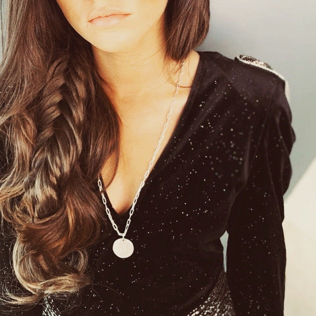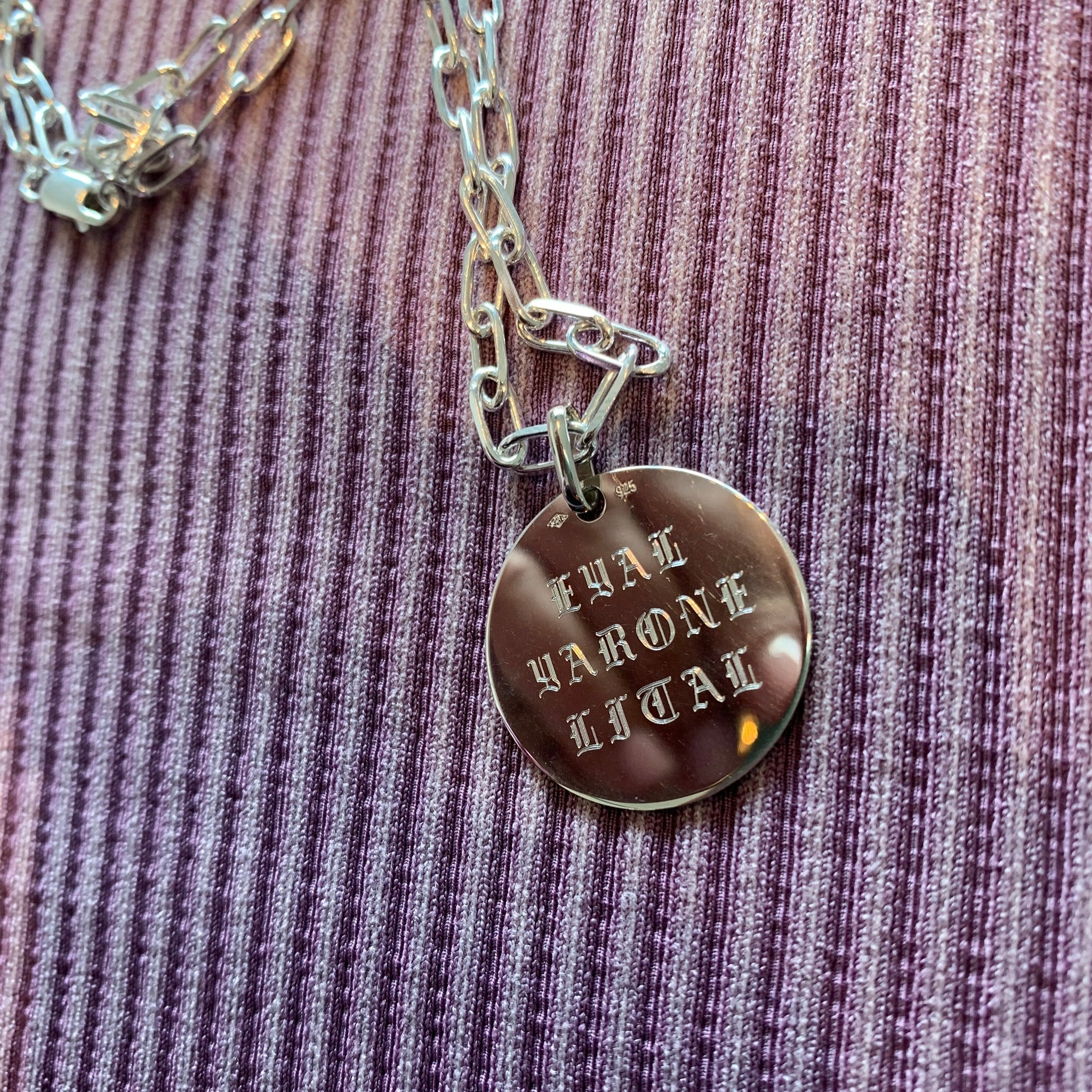 Médaillon 2,7 cm Gravé Argent Chaine Rectangle