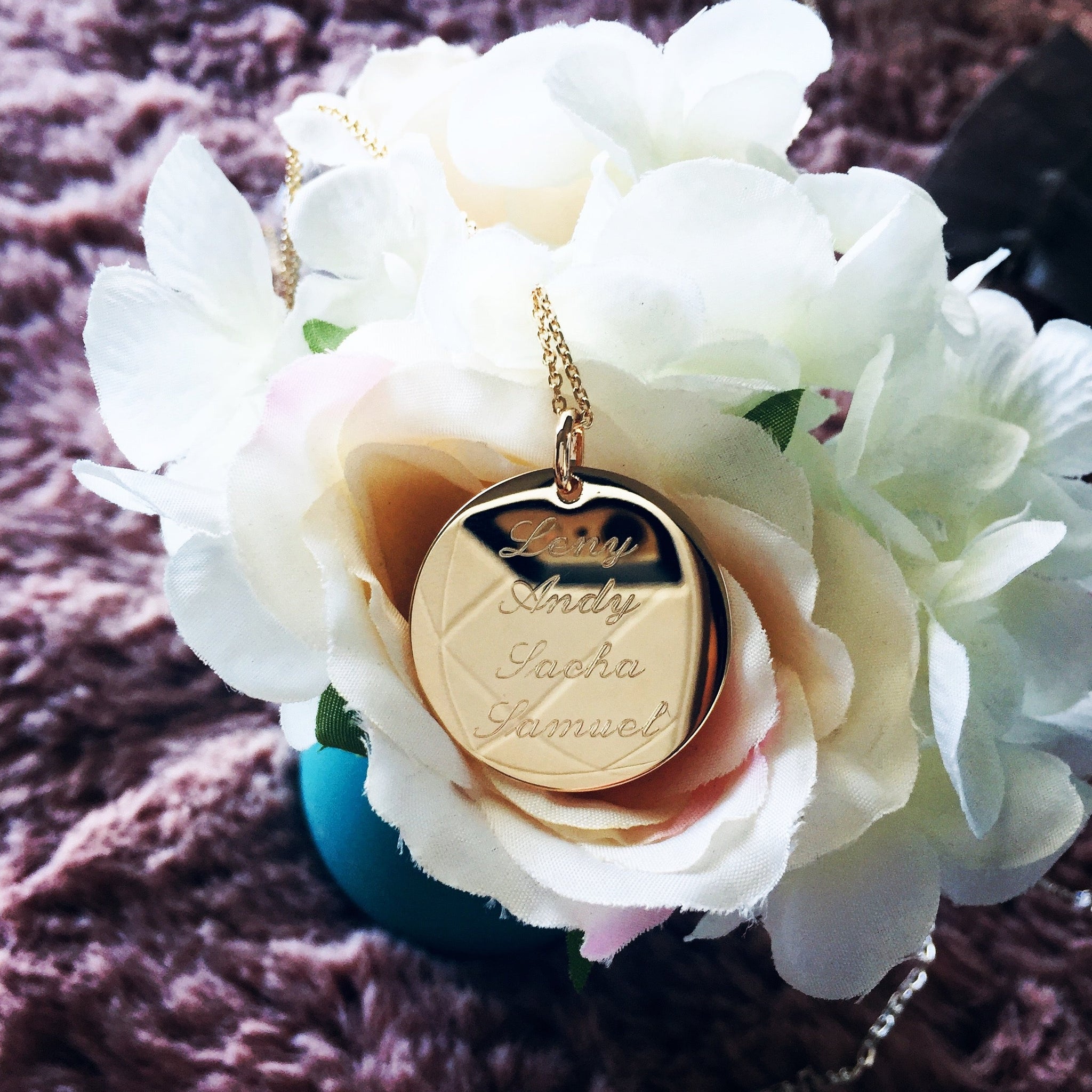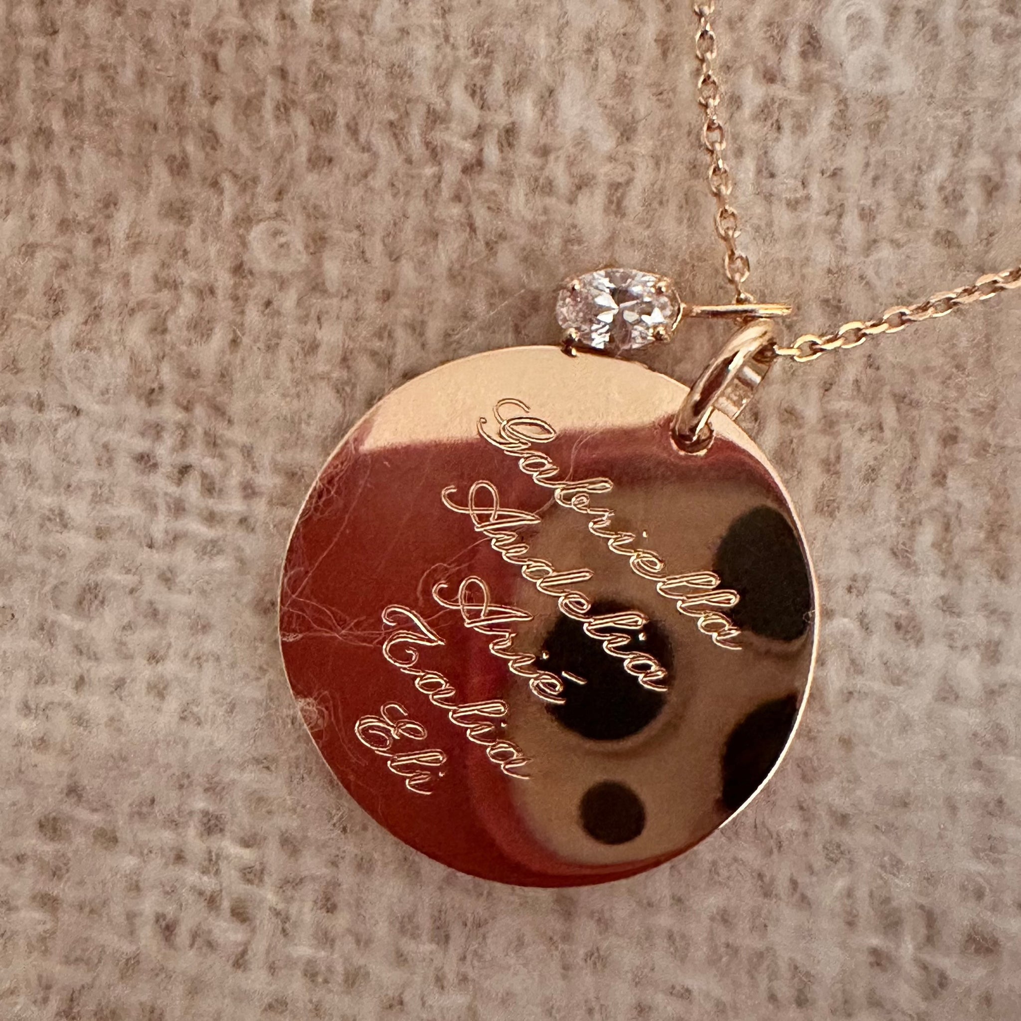 Medaillon 2,7cm Gravé Plaqué Or Chaine Simple